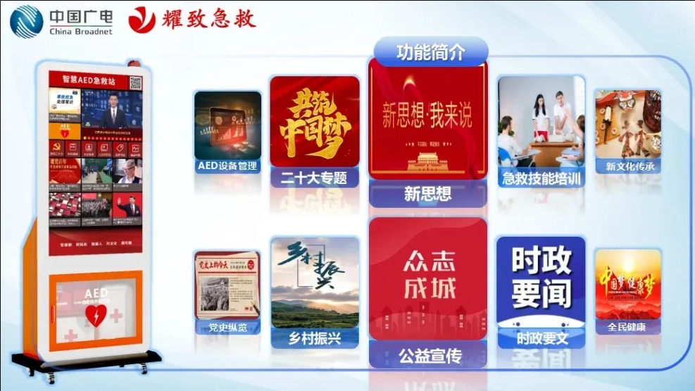 同時,爲響應國家政策,充分發揮科技創新在“健康中國2030”建設中的支撐引領作用,中國廣電廣州公司與耀緻急救聯合開發應急型警用急救箱一體化管理平台,助力提速公安系統的應急體系現代化建設。