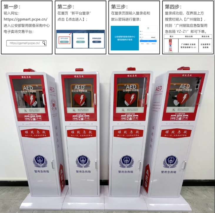 近一個月内,全國多地公安系統通過【012】平台點單采購警用急救箱&AED,耀緻急救與各地經銷商積極響應,爲全國多地公安局、派出所、交警隊等基層所隊完成了AED配置工作。并協助多地公安系統積極開展應急救護培訓,以确保設備的有效使用和人員的專業操作。