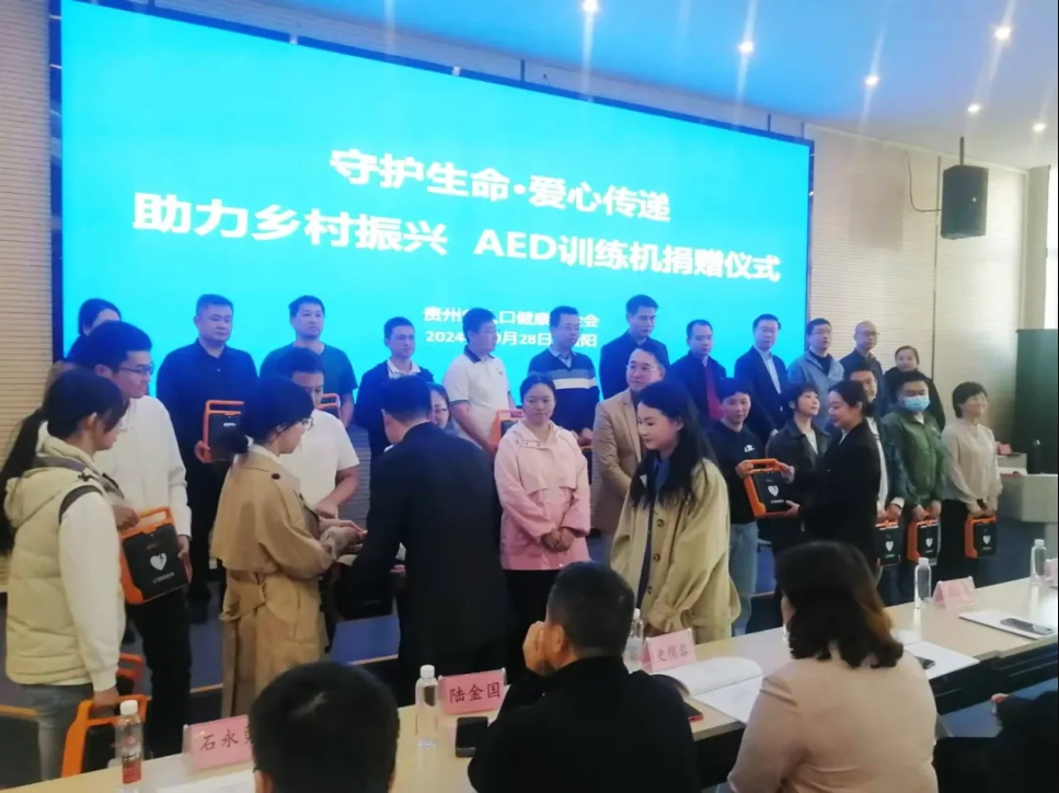 10月28日,廣州耀緻電子科技有限公司(下稱“耀緻急救”)和深圳市科曼醫療設備有限公司(下稱“科曼醫療”)通過貴州省人口健康基金會,向貴州省20個鄉村振興重點縣人民醫院和援所羅門群島中國醫療隊捐贈AED訓練機42台,捐贈儀式在貴州大學舉行。